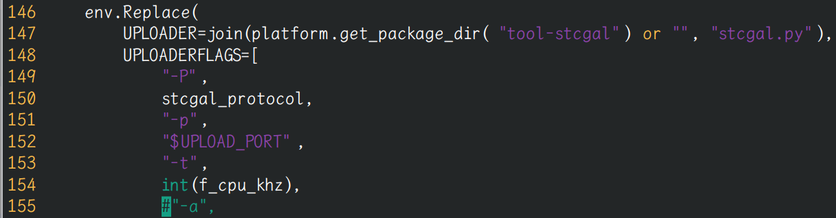 platformio在编译完并上传固件时,卡死在Cycling power: done,一直没有反应,经过查找一翻,最终查到如下解决方案: 找到~/.platformio/platforms/intel_mcs51/builder/main.py,在155行左右找到如下内容: